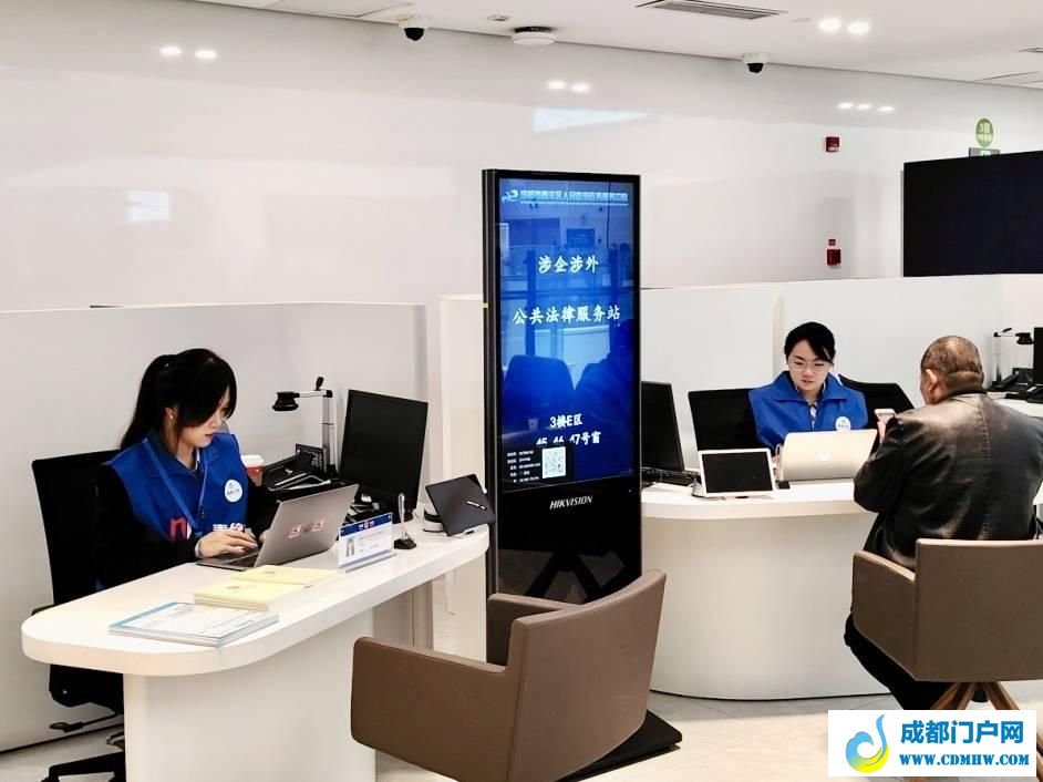 在涉企(涉外)公共法律服务站,值班律师为群众提供咨询服务。青羊区司法局供图
