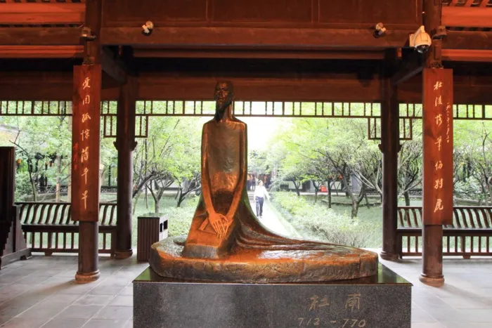 (七吧)杜甫草堂杜甫草堂位于四川省成都市西郊的浣花溪畔,安于广厦千万间,大庇天下寒士俱欢颜便是出自此处。据说,唐乾元二年(759年),杜甫流寓成都,在浣花溪畔筑起茅屋,在此居住历时近四年,在这四年之中,他著作了大量的诗文达240篇,许多脍炙人口的著名诗篇如《茅屋为秋风所破歌》就是在居草堂时作出的。从北宋开始,后人在诗人的故居建园立祠,并多次修葺,现在的建筑规模是在明弘治十三年(1500年)和清嘉庆十六年(1811年)的两次较大规模的修建中确立的,现存主要建筑有大廨、诗史堂、柴门、工部祠等。