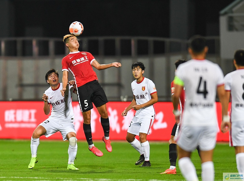 11月3日,成都蓉城队球员胡睿宝(左二)在比赛中争顶。新华社记者 王曦 摄